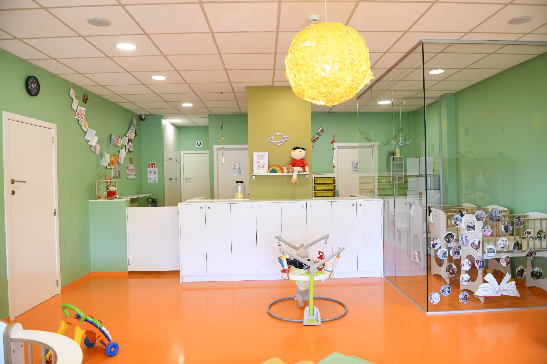 Onze ruime en lichte ontvangstruimte biedt een veilige en vrolijke plek waar ouders en kinderen zich meteen thuis voelen. Met kleurrijke details en een speelse inrichting nodigt deze ruimte uit tot ontdekking!